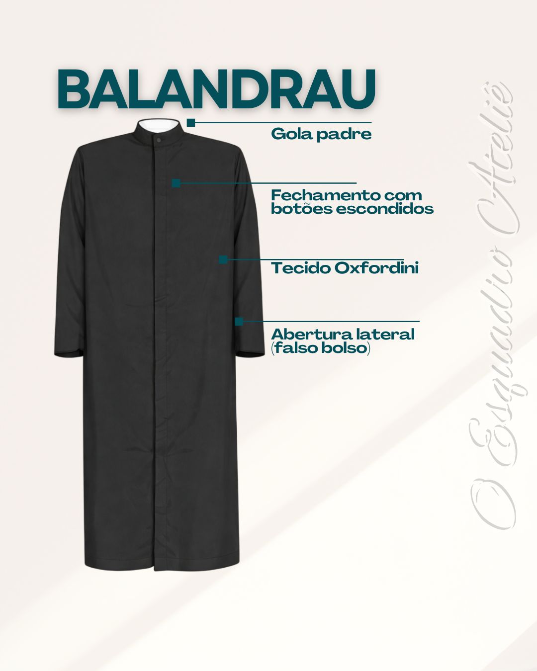 Balandrau confeccionado em oxford com bolso falso